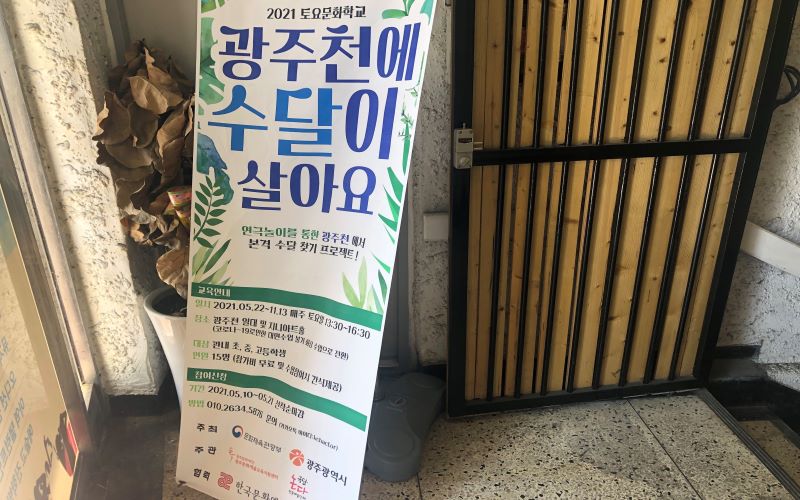 오늘 취재한 토요문화학교 극단 논다는 광주천의 생태를 소재로 환경문제로 접근하고 플라스틱 등의 재활용 쓰레기를 오브제로 활용하여 아이들과 함께 연극 놀이를 진행한다. 예를 들어 페트병, 종이컵 등 쓰레기를 재활용하여 현재 기후변화나 환경오염에 큰 영향을 받아 생명을 위협받고 있는 동물들을 직접 만들고 있다. 또한 광주천에 사는 수달이 되어 광주천의 환경을 바라본다. 아이들에게는 어려울 수 있는 환경 문제를 어떻게 하면 그들의 시선으로 쉽게 이해할 수 있을지, 환경오염이 자연 생태계에 얼마나 큰 문제를 일으키는지, 연극이라는 소재를 바탕으로 다가간다.
