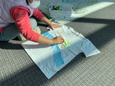 몸을 마음껏 쓰고 풀었으니 이젠 각자 티셔츠 위에 강을 그려볼 시간이다. 미리 준비된 여러 재료를 이용해 나무를 그리기도 하고 물고기 도장을 이용해 찍어도 보며 티셔츠 속 작은 생태계를 만들어 나갔다. 아이들이 만든 겉보기엔 제멋대로인 생태계를 자세히 들여다보니 고유종과 외래종의 구분 없이 평화롭게 함께 살아가는 곳처럼 느껴졌다.