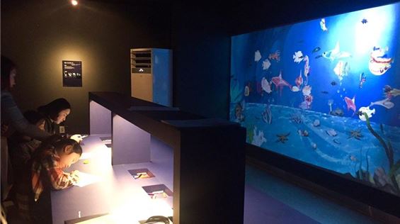놀이터하면 아파트 한쪽에 위치한 모래와 그네와 정글짐이 있는 그런 이미지를 상상하게 된다. 요즘은 날씨와 환경에 구애받지 않은 실외 놀이터까지도 생겼지만, 여기는 미디어 놀이터다! 여기서는 미디어를 가지고 논다. 좀 더 정확히 말하자면 어린이의 다중지능을 자극하는 7가지 인터랙티브 미디어 게임과 모션 인식이 접목된 놀이터이다. 어린이들은 자연스럽게 놀면서 미디어아트와 친해진다. 관람객이 그린 물고기가 미디어 바다를 헤엄치거나 발걸음에 따라 빛과 소리가 반응한다. 미디어 기술이 놀이와 만나면서 딱딱하게만 느껴지는 기술을 좀 더 쉽게 받아들일 수 있다.
