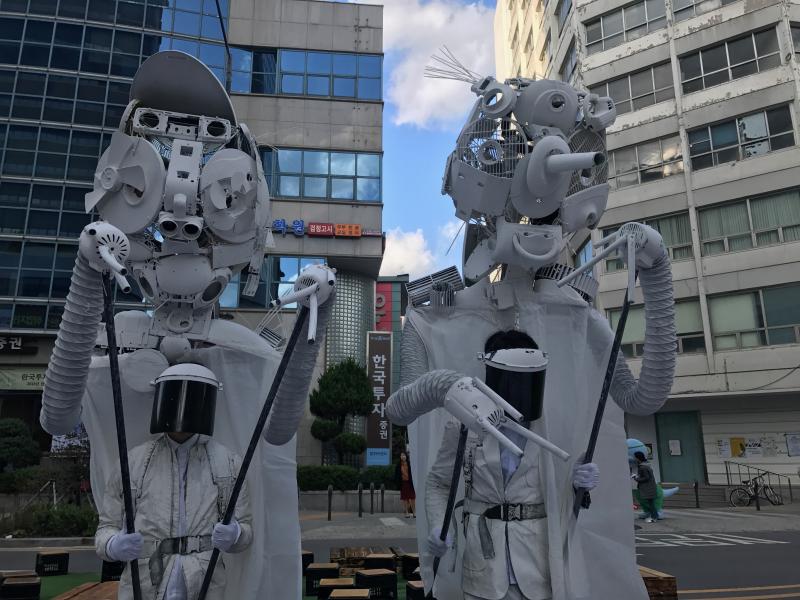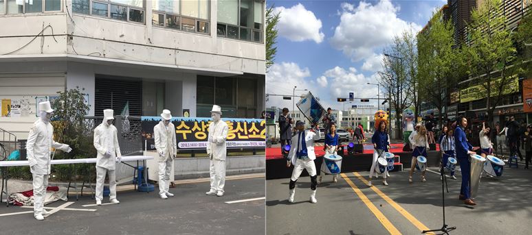 거리 공연의 가장 큰 매력은 무엇일까. 역시 관객과의 실질적인 소통이 적극적으로 이뤄진다는 점이다. 거리 공연으로는 ‘소심한 성격’ 콤플렉스를 공연으로 극복해 나가는 스토리텔링을 가진 공염팀 MArt의 <MArt Show> 클라운 퍼포먼스, 주인공 바가와 본드가 세계여행을 하면서 생기는 에피소드를 다룬 공연팀 극단 즐겨찾기의 <바가앤본드> 마임, 상사의 갑질에 퇴사를 결심하는 신입사원을 보여주며 사회세태를 고발하는 공연팀 김종환의 <퇴사학교> 서커스 드라마, 여태까지 보아온 친절한 광대가 아닌 불만 많고 툴툴거리며 관객을 괴롭히는 광대를 보여주는 공연팀 김찬수 마임컴퍼니의 <블랙클라운> 마임, 전쟁으로 사랑하는 사람을 잃은 주인공이 사랑하는 사람의 영혼을 찾아 나선다는 스토리텔링을 가진 공연팀 친구네옥상의 <황금영혼> 이동형 거리극 등으로 이루어졌다.