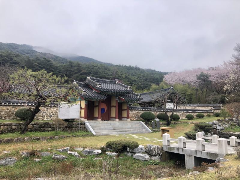 △ 월봉서원 뒤편 판사등산(백우산)에 비구름이 내려앉은 모습