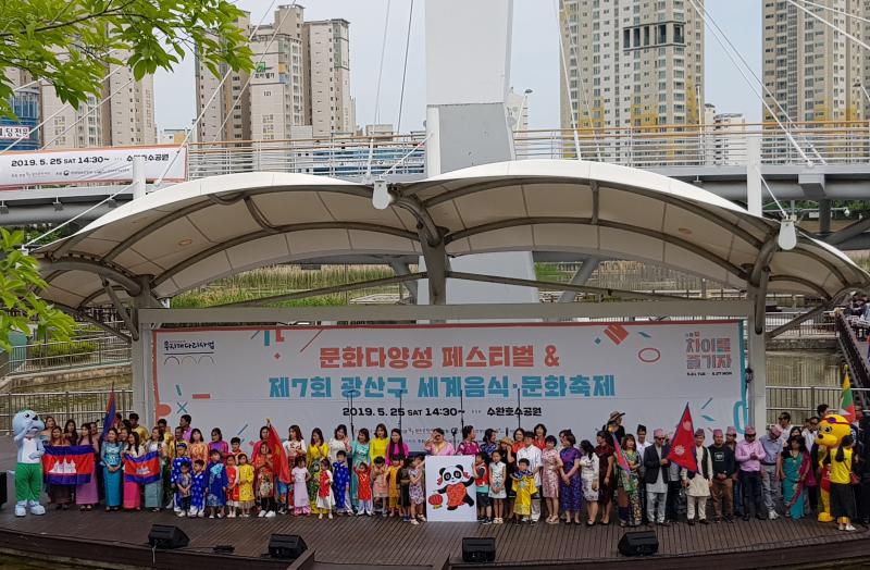 완연한 여름으로 달려가는 5월의 마지막 토요일. 수완호수공원은 많은 사람의 열정과 관심으로 더욱 더 뜨거웠다. ‘2019 문화다양성 페스티벌’이 열리는 축제의 현장이었기 때문이다. 2019년 5월 25일 수완호수공원에서 열린 문화다양성페스티벌은 광산구 세계음식∙문화축제와 함께 진행되었다.