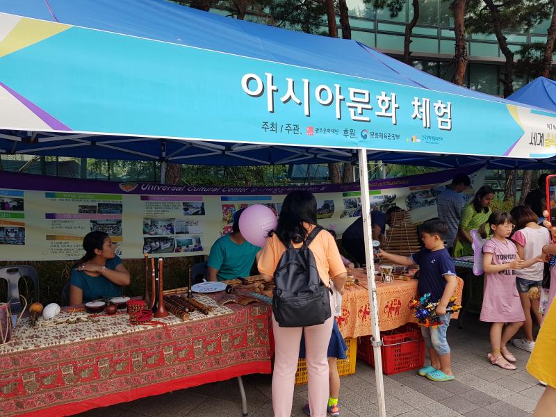 문화체험 부스에도 다양한 프로그램들이 함께했다. 각종 만들기 체험부터 세계민속의상 체험, 민속놀이를 즐길 수 있는 놀이마당, 그리고 전통악기, 헤나와 반디 체험 등을 할 수 있는 아시아 전통문화체험 등이 준비되어 있었다. 이들 중 가장 있기가 있었던 부스는 아시아 전통악기와 민속 의상 체험 그리고 헤나 체험이었다. 평소 볼 수 없던 다양한 악기들이 각기 다른 소리를 만들어내며 사람들의 호기심을 유발했고, 형형색색의 다양한 세계민속의상들은 사람들의 발걸음을 부스로 이끌었다.