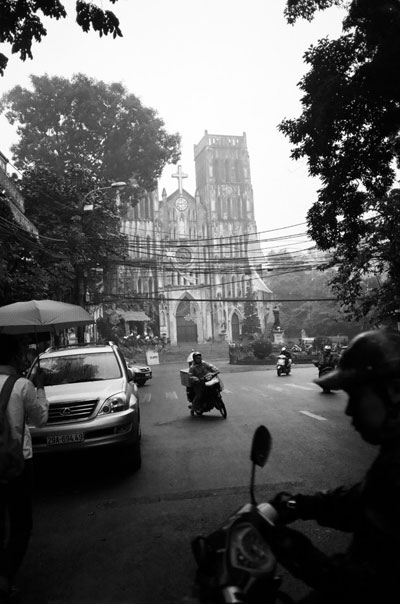 새벽 6시에서 7시쯤, 숙소에서 무작정 나와 걷다가 아침안개가 널리 퍼져있었던지라 몽롱한 기운을 불어넣은 상태였어요. 거기다 양쪽 큰 꽃 장식들이 잘 어울러져 있었고 아낙이 과일바구니를 들고 길을 걷고 있는데 베트남의 아침을 담아낼 수 있을 것 같아 얼른 카메라를 꺼냈었죠. 이건 제가 필름으로 두 번 찍은 사진인데요. 찍고 바로 인화를 못하니까 그 당시에는 확실하게 확인을 못해서 답답했었죠. 한국에 와서 인화해보니까 첫 번째 사진은 초점이 떨어져나가 있어서 엄청 아쉬웠어요. 초점만 맞았으면 완벽했을 것 같았거든요. 그리고 두 번째 사진을 봤는데 초점이 제대로 맞춰 있어서 얼마나 좋았는지 몰라요.