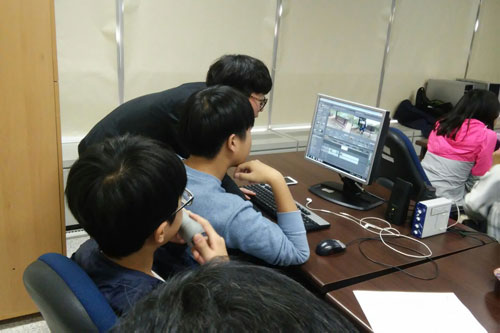 발표회를 일주일 남겨놓은 마지막 편집시간. 아이들의 눈과 손이 빠르게 움직인다. 그동안 배운 기술을 바탕으로 각자 파트를 나누어 편집하는 아이들. 어두운 편집실엔 적막만 흐른다. 클릭 소리만 나는 편집실 밖으로 참여 학생을 한 명씩 불러내어 간단한 인터뷰 시간을 가졌다.