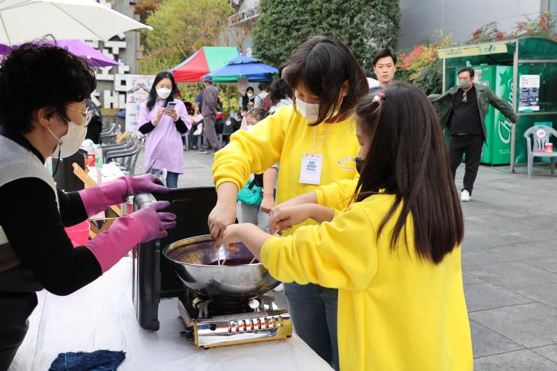 ▲천연염색 체험부스에 참여 중인 어린이들