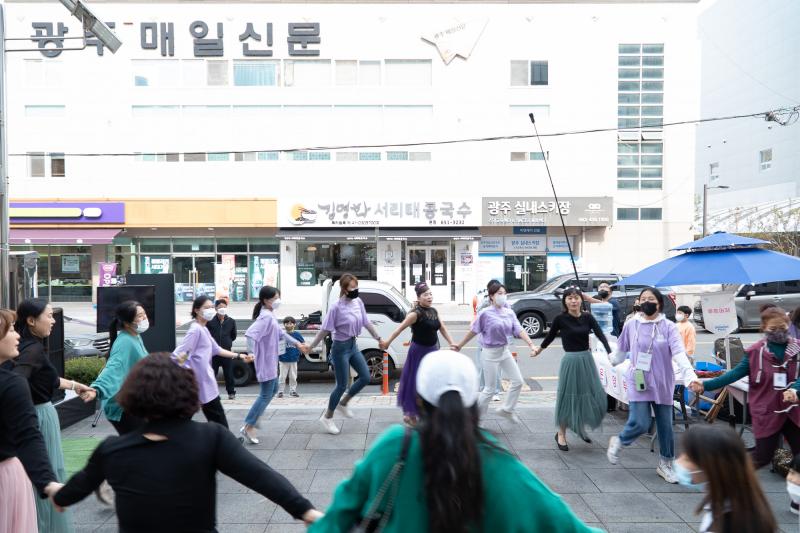 편하게 앉아서 광주 대표 음식인 상추 튀김도 먹고 막걸리도 한 잔 마시며 이야기하고, 놀이 세상 시옷에서 준비한 단심줄 놀이가 있어요. 우리나라 전통 놀이인데 올해 콘셉트처럼 같이 한번 묶어보자는 퍼포먼스를 하고 DJ파티까지 계획되어 있습니다.