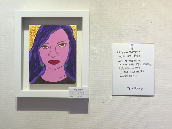 Q. 매우 잘 봤다. 정말 미술을 배우지 않았던 분들이었을까, 할 정도로 다양하고 이채롭다. ‘엄마 꽃이 되다’의 문화예술교육프로그램의 결과물전시전이라고 보기에는 다들 그림 실력들이 수준급이다.