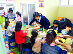 글을 쓰기 전 그 동안 취재를 위해 어디서 어떤 아이들과 무엇을 가지고 이야기를 나누었는지 곰곰이 생각을 해보았다. 지금 당장 떠오르는 BEST 장면은 두 달 전 할로윈 데이 때 만났던 학동지역 아동센터 친구들이다. ‘창의에 생명을 더하다’ 아나바다 프로젝트를 취재하러 가서 만났던 그 날은 1시간 30분 동안 버스를 타고 정류장에서 내려 핸드폰에 나타난 지도 어플을 보며 학동지역 아동센터를 찾아갔었다! 춥지도 덥지도 않은 딱 선선하고 포근한 가을 날씨에다가 너무 쨍-하지도 않고 적당히 비춰준 기분 좋은 햇살, 학동지역 아동센터에 거의 도착했을 때쯤 문 앞에서 들려오는 아이들의 웃음소리. 이 삼박자가 어울렸을 때의 그 기분이란! 그날 그냥 기분이 좋아서 계속 웃었다. 다른 센터들과는 다른 건물 구조였던 그 곳은 현관문 쪽 복도에 아이들이 자유롭게 책을 읽을 수 있도록 많은 책들이 구비가 되어있었다. 몇몇 아이들은 책을 읽고 있었고 또 다른 아이들은 사포질을 하며 열심히 창작 활동에 집중하고 있었다. 포근한 날씨, 기분 좋은 햇살 그리고 열심히 창작활동을 하며 웃어대는 아이들. 이 삼박자가 어울러졌을 때의 기분이란!