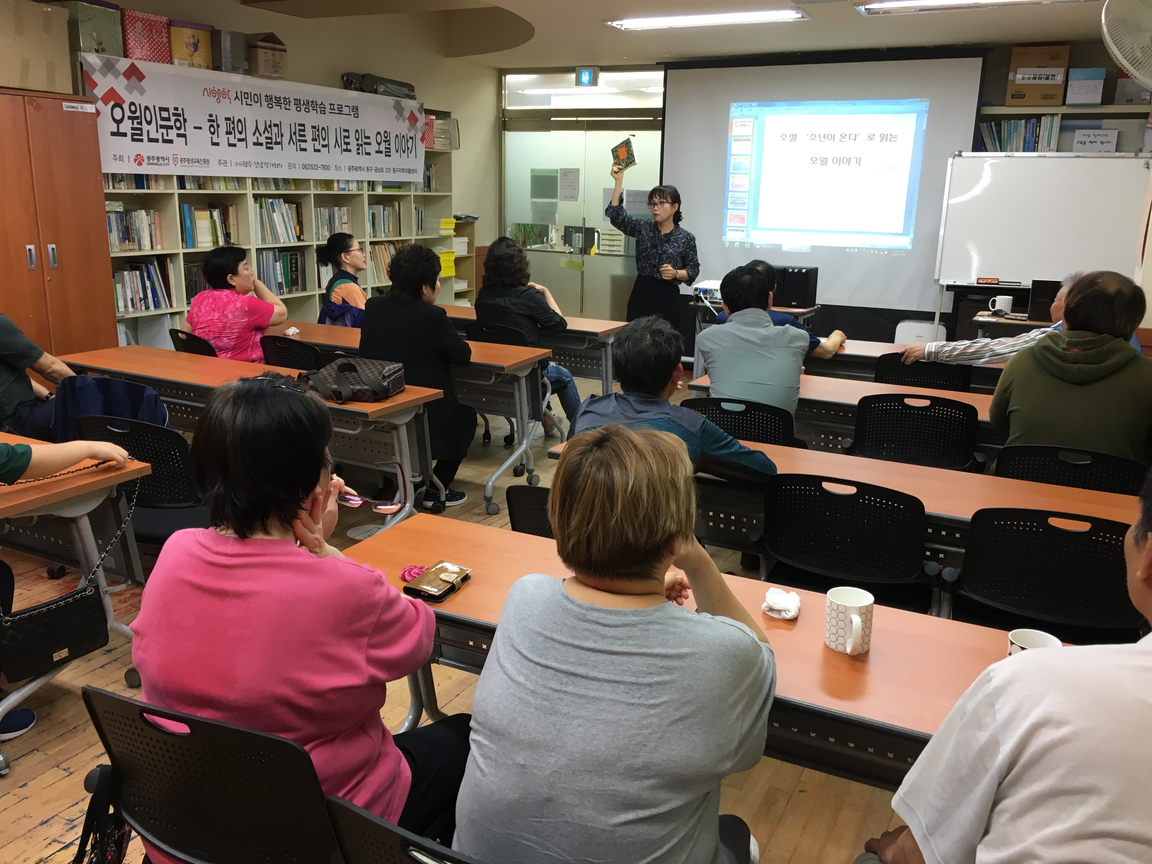 - 한 강의 작품『소년이 온다』와 서른 편의 시 작품을 통해 오월 역사에 대한 자긍심과 사람의 감정을 공감하고 일상에서 시와 소설을 접하도록 함.