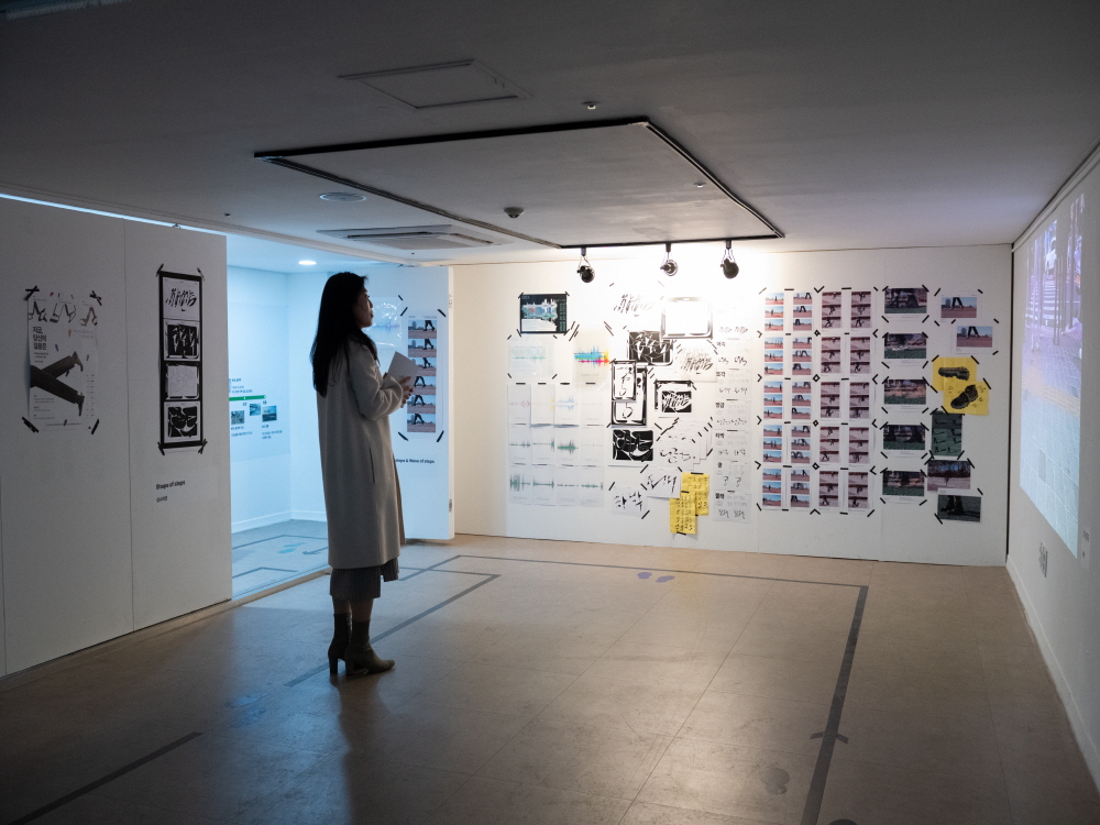 세 번째 랩은 ‘시민걸음 탐구생활’이라는 주제로 오주현 랩장과 여러 분야의 팀원들이 함께하고 있답니다. 건축부터 시작해서 문화예술기획, 문화학 등의 다양한 분야의 전문연구원들과 ‘걷기’라는 일상 속 행동을 통해 세상의 변화와 내·외면의 움직임을 탐구해 왔다고 합니다. 1차 연도 앙리 르페브르의 걸음 분석 이론을 기반으로 걸음에 대해서 탐색했으며 아토그래피(A/r/tography)를 통해 결과물이 아닌 삶과의 통합, 협력적 실천, 지속적 연구 과정이 강조되는 연구 방법론을 토대로 진행했는데요. 연구 결과는 ‘지금, 당신의 걸음’ 아카이빙 전시로 했답니다. 각자의 오감부터 시작해서 낯선 형용사의 걸음 형태로 연결된 다양한 걸음에 주목해 오고 있죠. 올해도 다양한 예술 기반 연구를 바탕으로 아카이빙 미니 전시회를 통한 지역사회와의 연계 방안에 대해 고민하고 있다고 합니다. ‘감각하는 걸음 안에는 나를 비롯한 도시를 바꿀 수 있는 엄청난 에너지가 존재한다.’라는 명언을 남겨주셨습니다. 여러분도 푸르딩딩한 걸음 준비되셨나요?