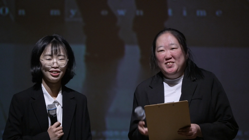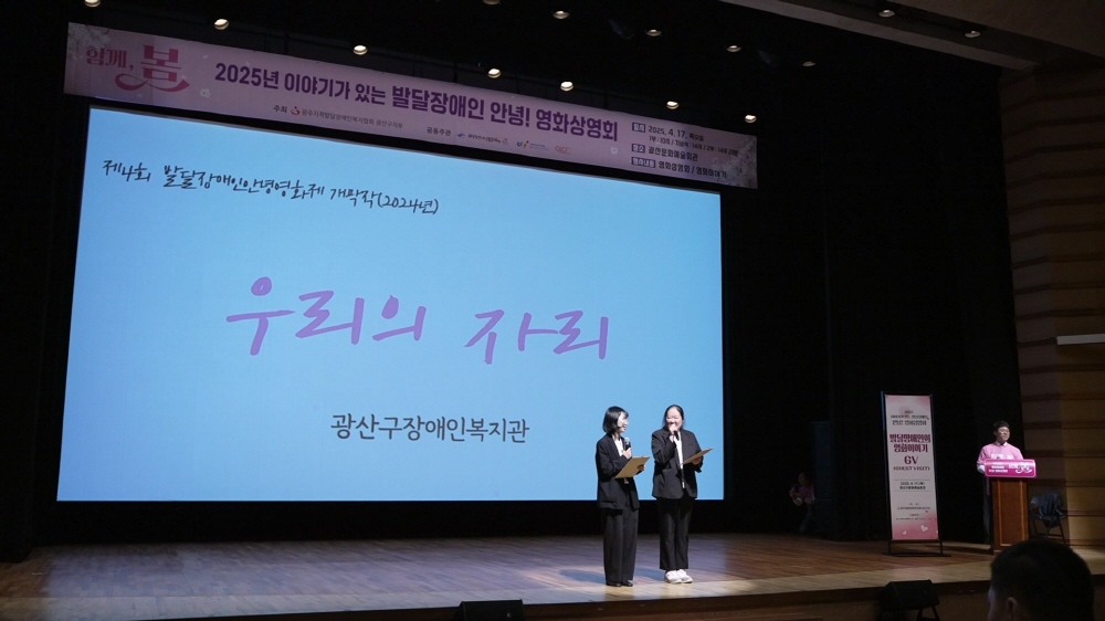 '광산구장애인복지관'에서 만든 영화 〈우리의 자리〉 상영 후 관객과 대화 중인 배우 추진실(왼쪽), 장예원(오른쪽) ⓒ발달장애인 안녕! 영화제