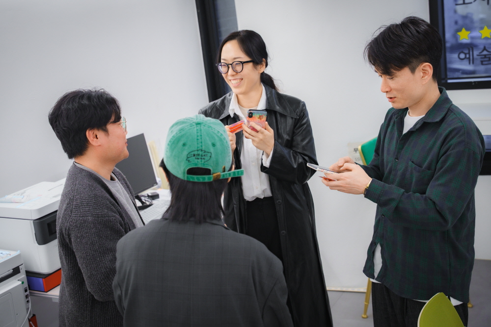 “올해는 여러 예술가를 만나리라 다짐했는데 오늘 이뤘다”, “같은 뜻으로 일하는 이들을 만나 너무 좋다”, “솔직히 그냥 인터뷰인 줄 알았는데 그게 아니었다.”라고 네 명은 팔십 분만에 의자에서 기분 좋게 일어났다. 시키거나 권하지 않았지만 시커먼 전화기를 고이 쥐고 서로 이름과 연락처, 어쩌면 SNS 계정까지 나누는 것 같았다. 이것은 인터뷰가 아니라 소개팅이었을까. 동그랗게 모여 있는 모습이 어느 구석에서 아무도 모르게 똘똘 솟아오르는 샘물과 닮았다. 기꺼이 시작하는 사람들의 모양새.