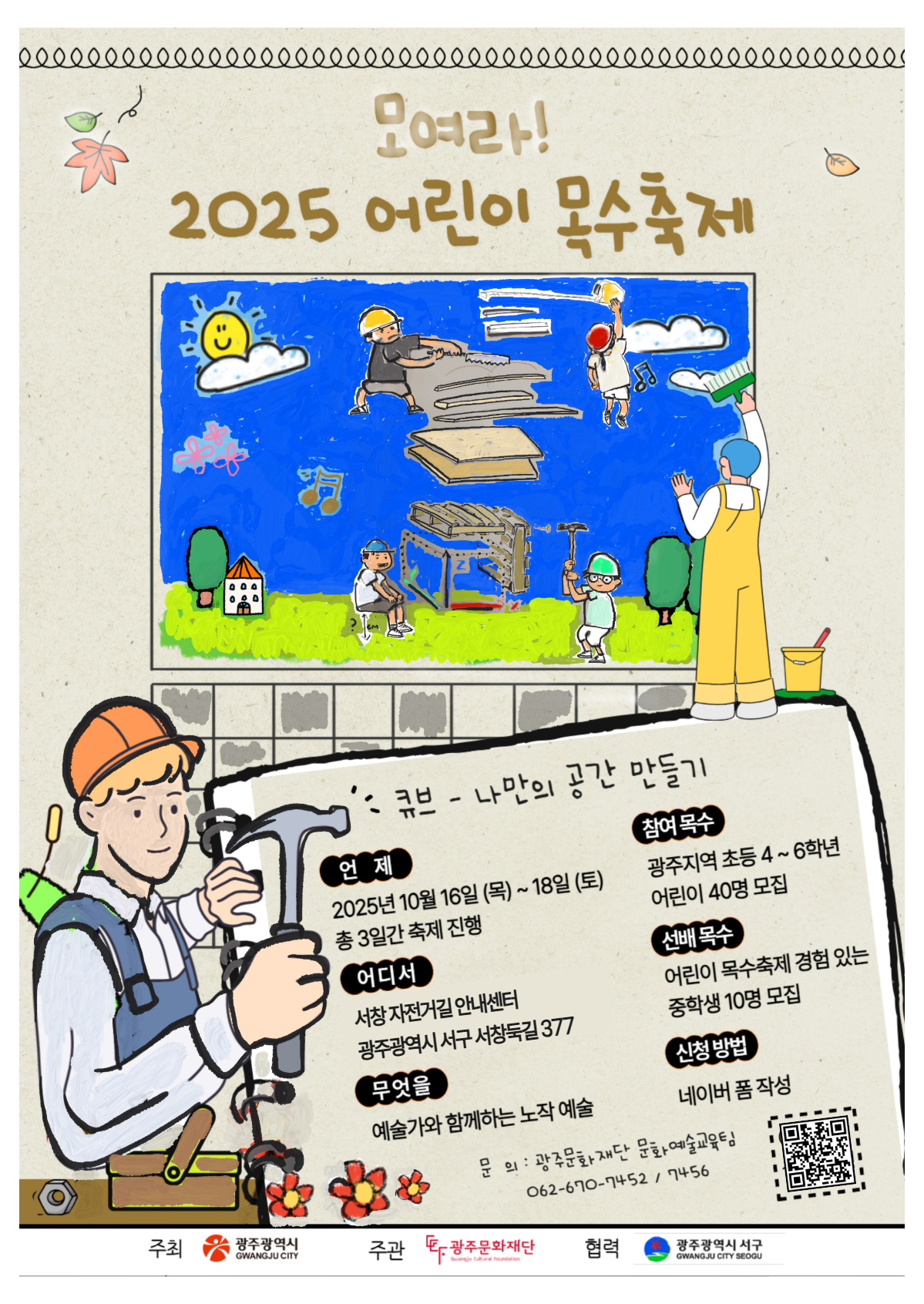 광주문화재단은 환상적인 공간을 만들어갈 어린이 목수 여러분을 기다립니다.