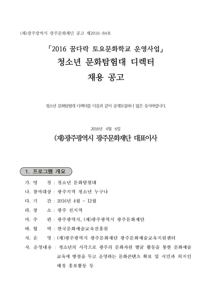 - 2016 청소년 문화탐험대 디렉터 공개모집 공고문.hwp [size : 20.5 KB] [다운로드 : 70]